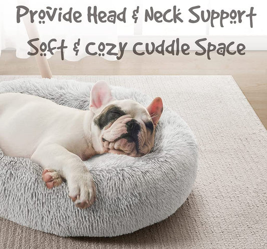 Donut Dog Bed Faux Fur Fluffy Calming Sofa for Large Dogs, Soft & Plush anti Anxiety Pet Couch for Dogs, Machine Washable Coco Pet Bed with Non-Slip Bottom, 36"X36"X8" Ivory